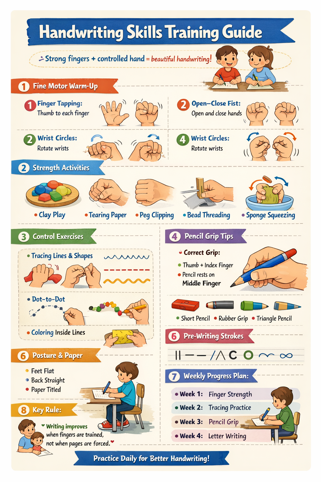 Students must practice daily as instructed. Consistency and patience are key to achieving beautiful handwriting.